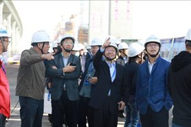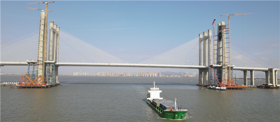 9日,與會(huì)代表實(shí)地觀摩了福廈高鐵泉州灣跨海大橋建設(shè)現(xiàn)場(chǎng),聽取了項(xiàng)目部對(duì)于大橋建造技術(shù)和施工進(jìn)度的匯報(bào),并進(jìn)行了充分交流。泉州灣跨海特大橋全長(zhǎng)20.287km,海上橋梁長(zhǎng)8.96km,跨越泉州灣主橋采用斜拉橋結(jié)構(gòu),主跨400m,為雙塔雙索面鋼混結(jié)合梁半漂浮體系斜拉橋。